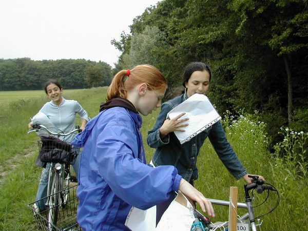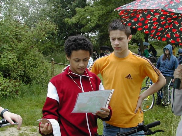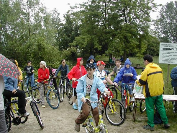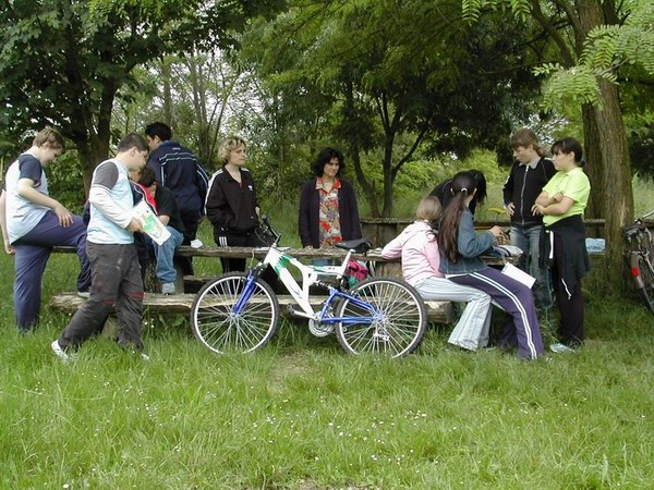 Il gruppo di allievi è giunto in località Turunduze per una gara di mountainbike orienteering nella fitta rete di sentieri che attraversa il bosco. Il loro compito non era facile: nei giorni precedenti avevano affrontato le tematiche inerenti il riciclaggio dei rifiuti ed i loro insegnanti avevano preparato per loro una verifica molto particolare. Tre i diversi percorsi proposti ma con uguale grado di difficoltà. Gli studenti con la cartina da orienteering dovevano trovare i punti di controllo indicati sulla carta, si fermavano a leggere una domanda sull’educazione ambientale e a scegliere la risposta esatta tra quelle proposte.