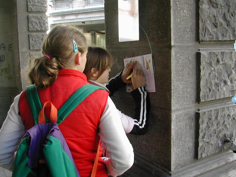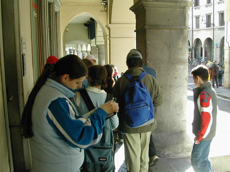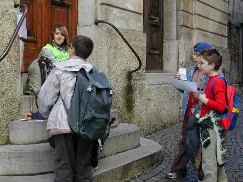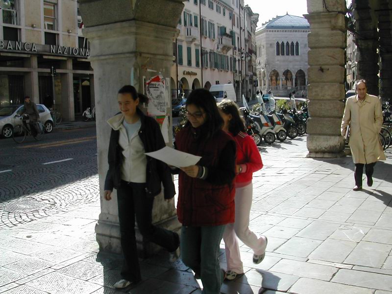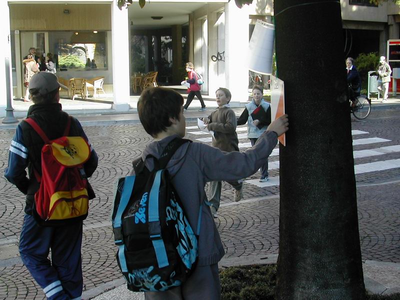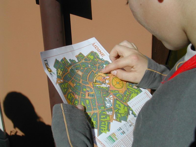 studenti studiavano il reticolo delle vie della loro città fermandosi ogni